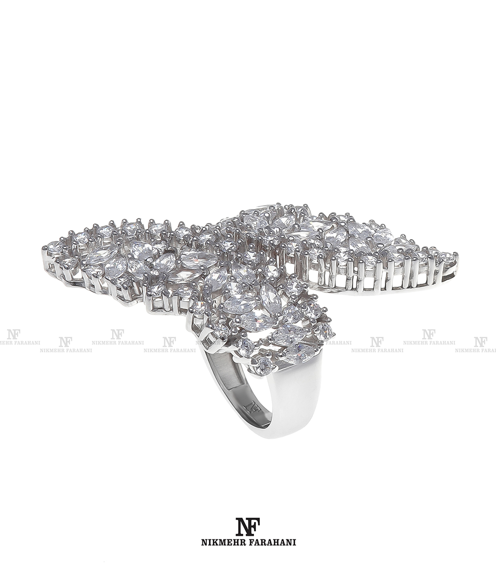 انگشتر زنانه برگ ،الهام گرفته از طبیعت با پایه کار جواهر مزین به نگین های زیرکنیوم آمریکایی شناسنامه دار با تراش مارکیز و گرد