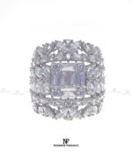 انگشتر زنانه ملکه با پایه جواهر مزین به نگین های زیرکنیوم آمریکایی شناسنامه دار با تراش مارکیز و باگت