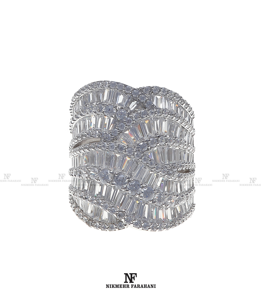 پایه کار جواهر مزین به نگین های زیرکنیوم آمریکایی شناسنامه دار با تراش باگت و گرد