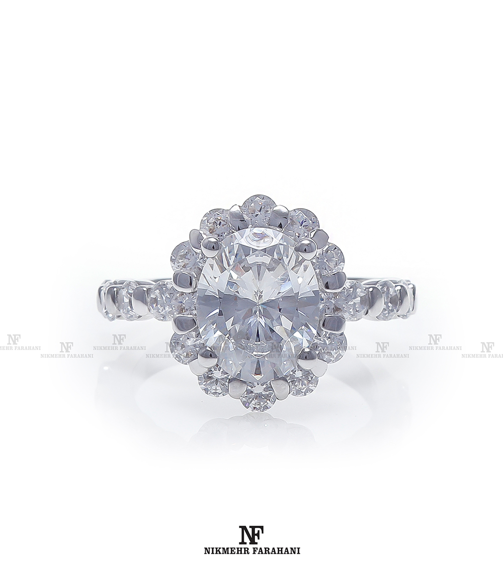 انگشتر سولیتر پایه جواهر مزین به نگین های زیرکنیوم آمریکایی شناسنامه دار