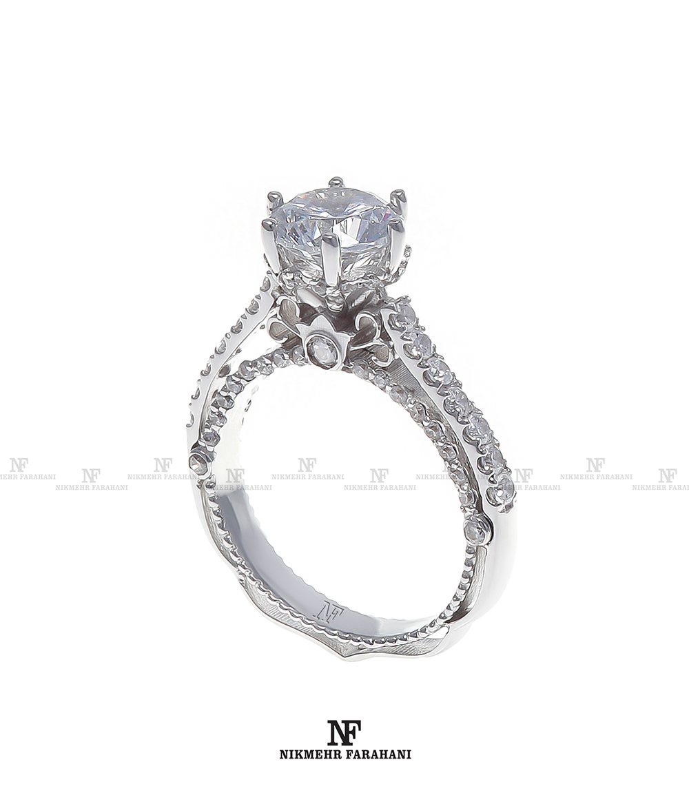 انگشتر زنانه پایه جواهر مزین به نگین های زیرکنیوم امریکایی شناسنامه دار