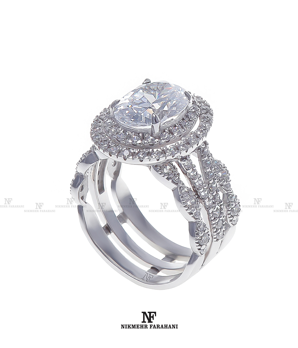 انگشتر زنانه متحرک پایه جواهر مزین به نگین های زیر کنیوم آمریکایی شناسنامه دار