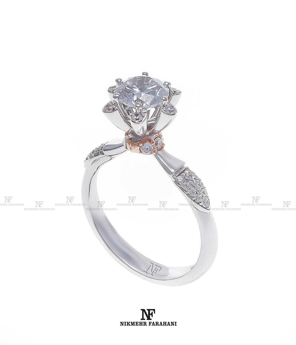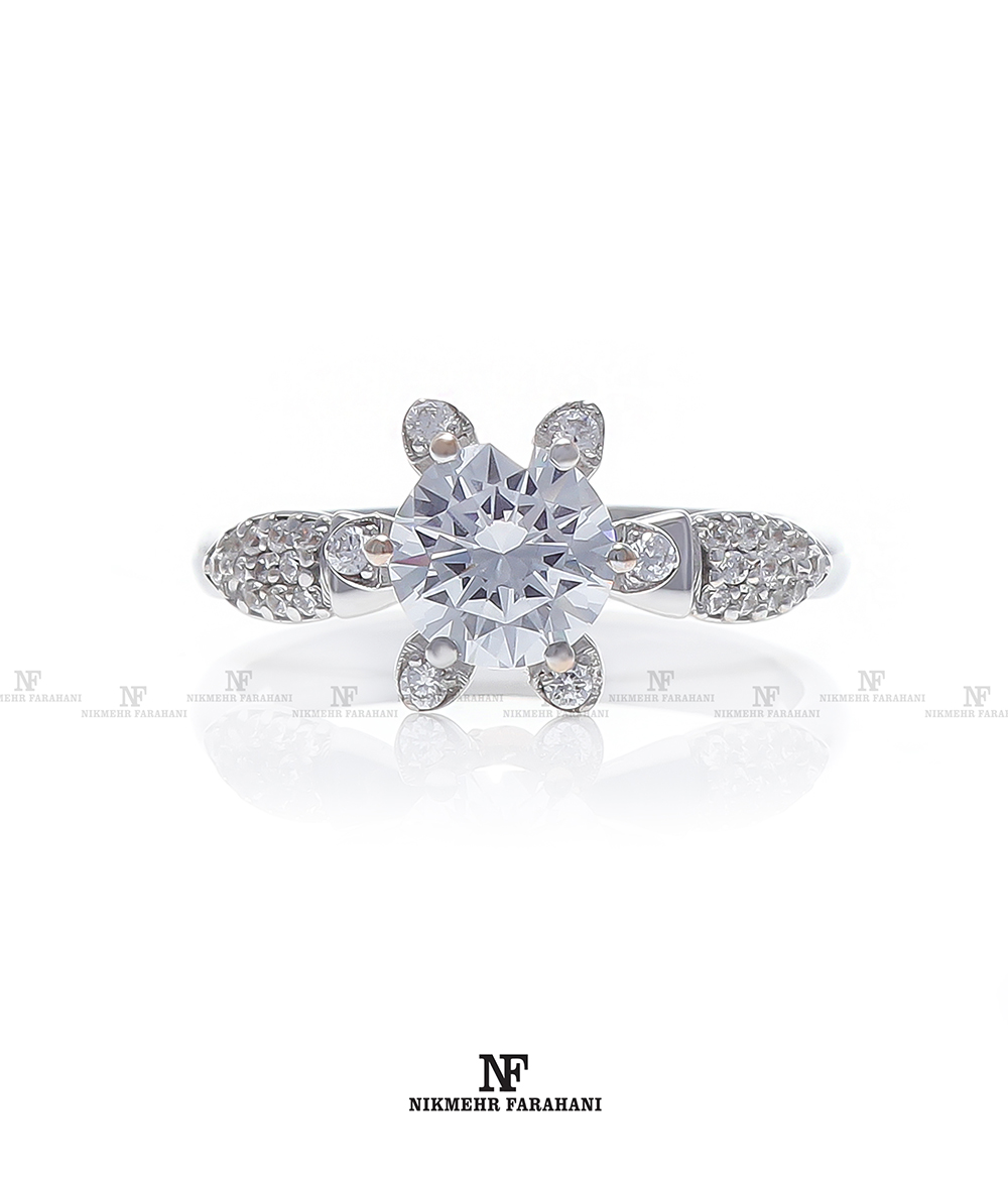 انگشتر سولیتر پایه جواهر مزین به نگین های زیرکنیوم آمریکایی شناسنامه دار