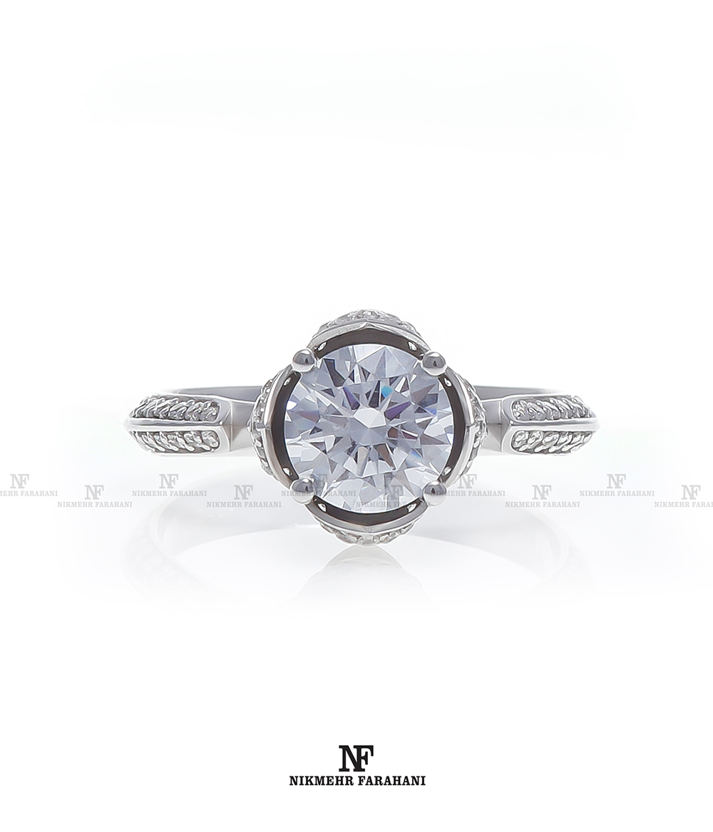 انگشتر سولیتر زنانه پایه جواهر مزین به نگین های زیرکنیوم آمریکایی شناسنامه دار
