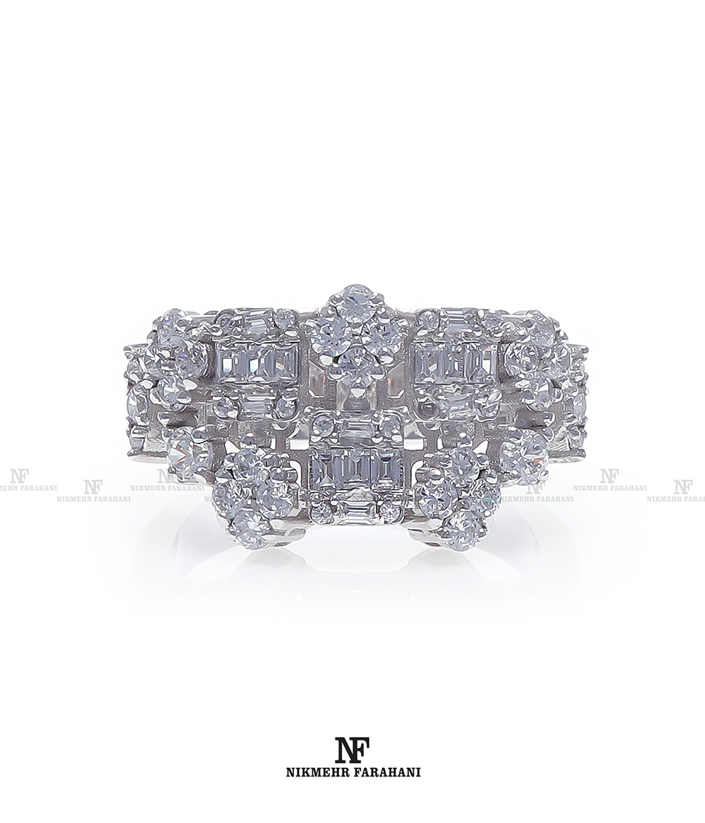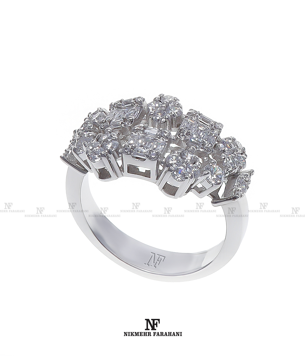 انگشتر زنانه پایه جواهر مزین به نگین های زیرکنیوم آمریکایی شناسنامه دار