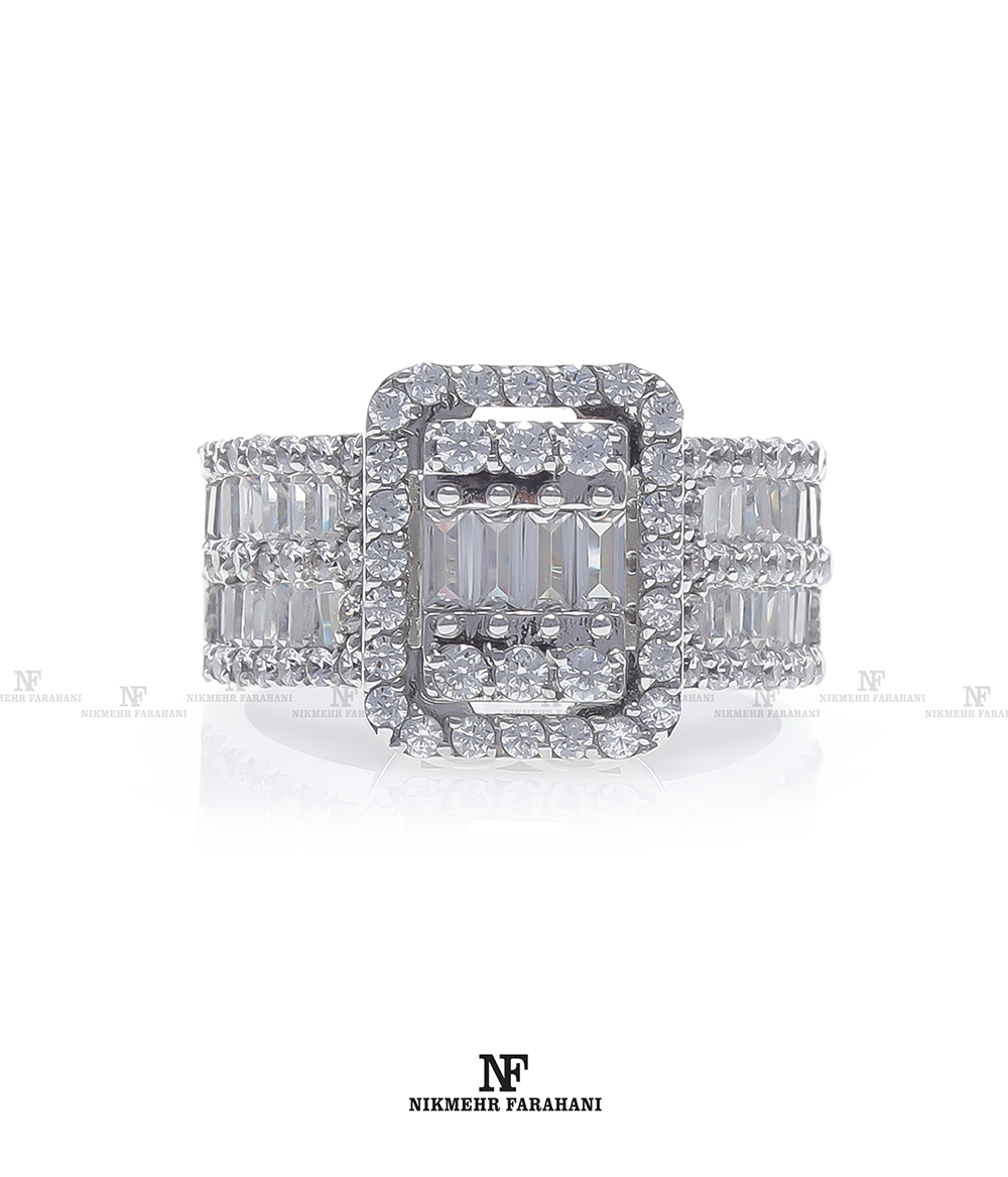 انگشتر رنانه پایه جواهر مزین به نگین های زیرکنیوم آمریکایی شناسنامه دار