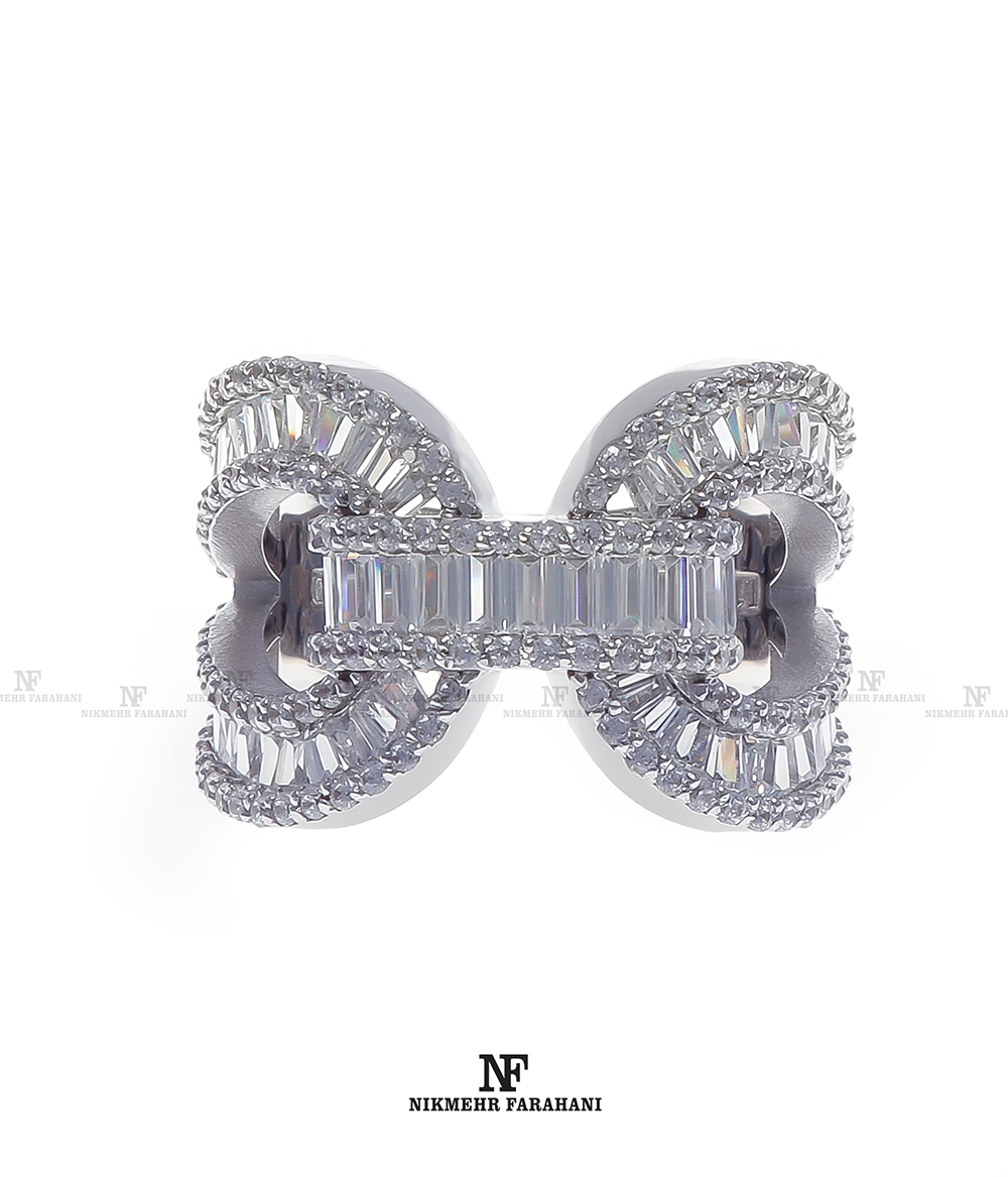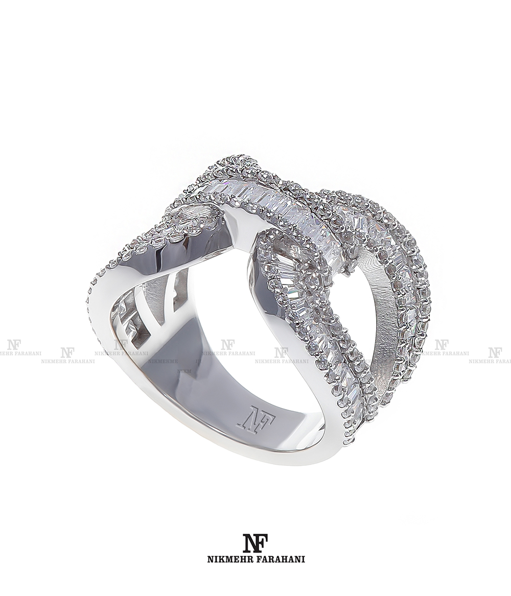 انگشتر زنانه پایه جواهر مزین به نگین های زیرکنیوم آمریکایی شناسنامه دار