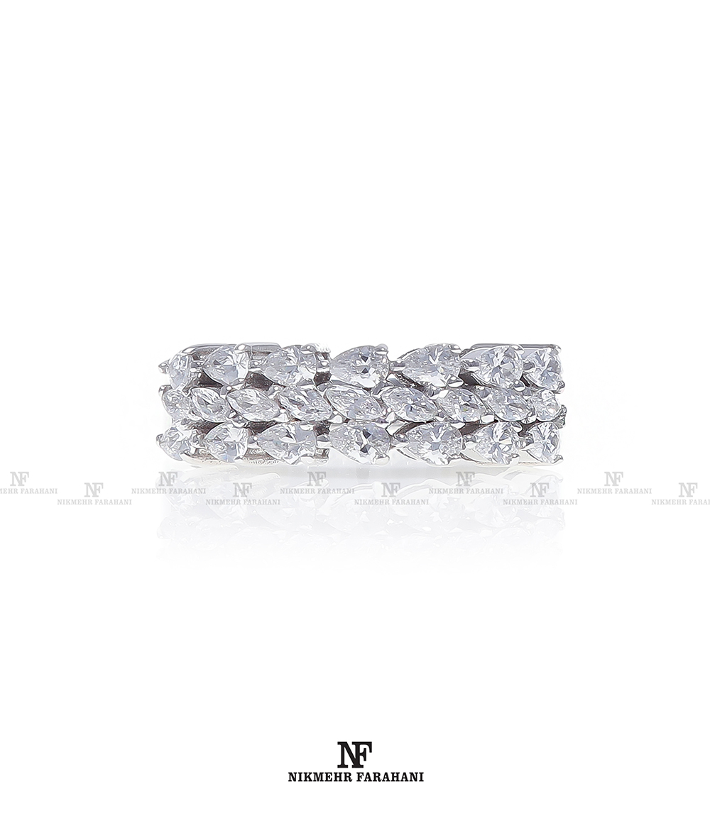 انگشتر زنانه با پایه جواهر مزین به نگین های زیر کنیوم آمریکایی شناسنامه دار با تراش مارکیز