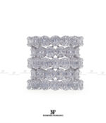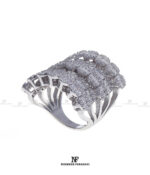 انگشتر زنانه ژورنالی با پایه کار جواهر مزین به نگین های زیرکنیوم آمریکایی شناسنامه دار با تراش باگت