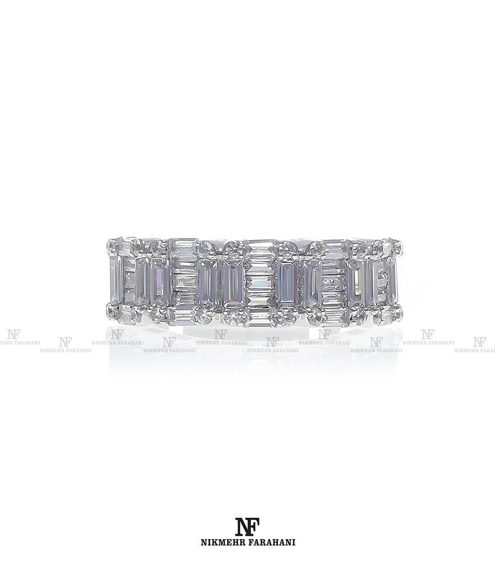 انگشتر زنانه پایه جواهر مزین به نگین های زیرکنیوم آمریکایی شناسنامه دار