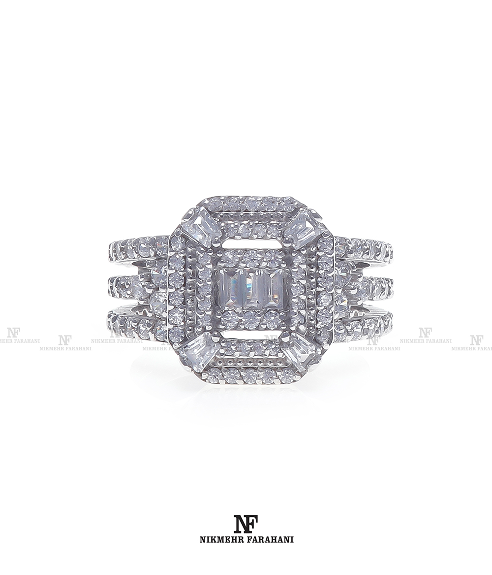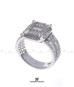 انگشتر زنانه با پایه کار جواهر مزین به نگین های زیرکنیوم آمریکایی شناسنامه دار