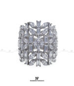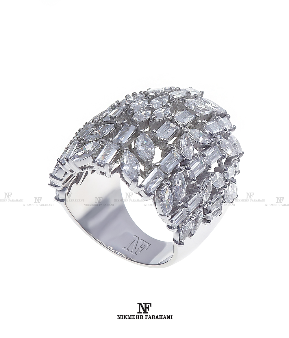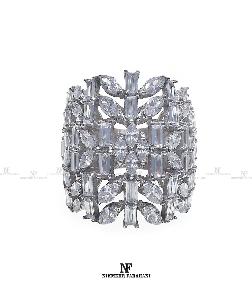 انگشتر زنانه پایه جواهر مزین به نگین های زیرکنیوم آمریکایی با تراش مارکیز و باگت