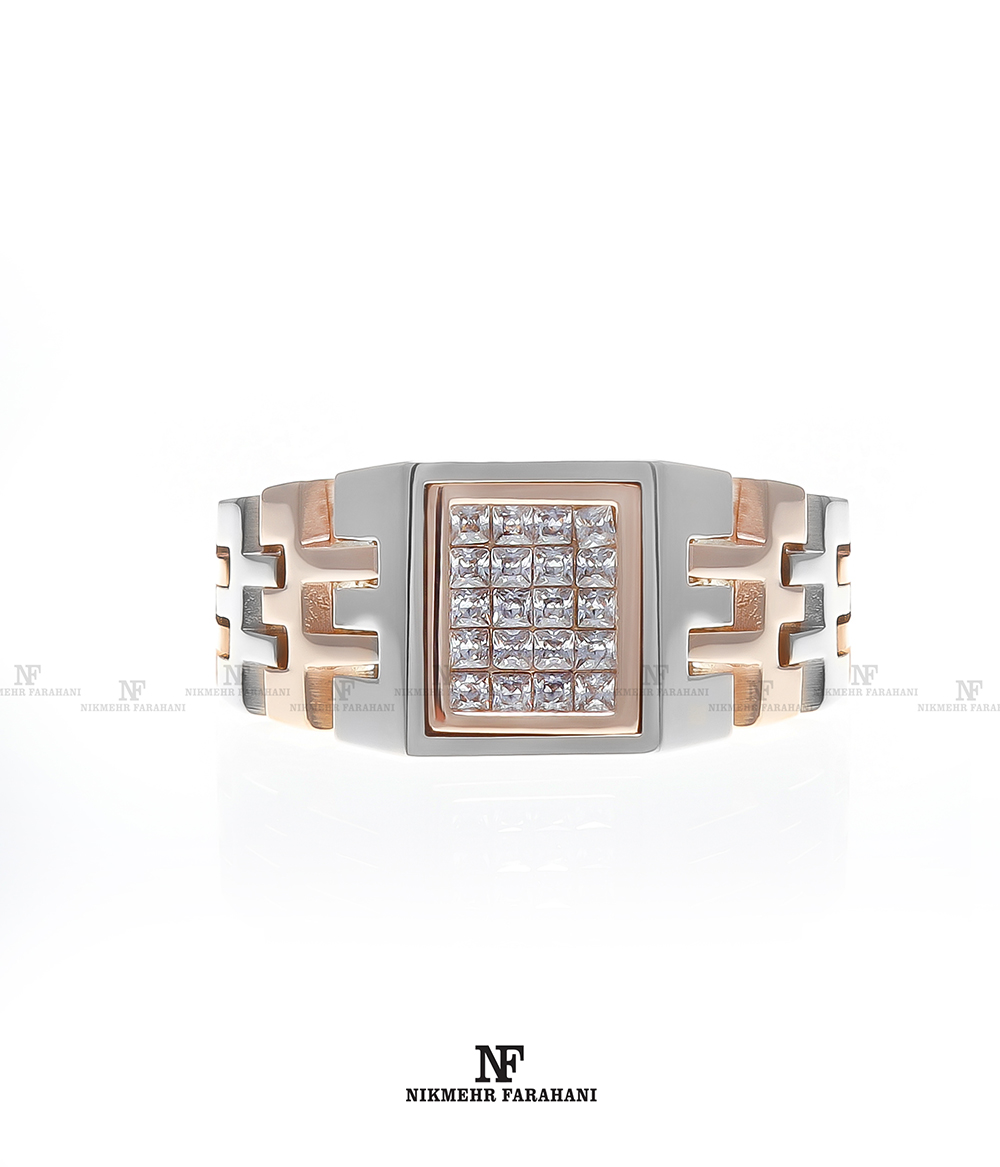 انگشتر مردانه پایه جواهر مزین به نگین های زیرکنیوم آمریکایی شناسنامه دار