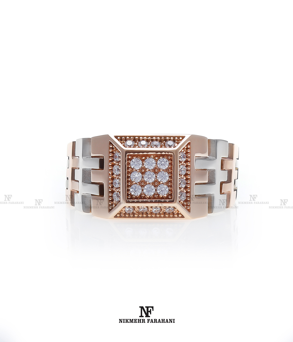 انگشتر مردانه با پایه جواهر مزین به نگین های زیرکنیوم آمریکایی شناسنامه دار