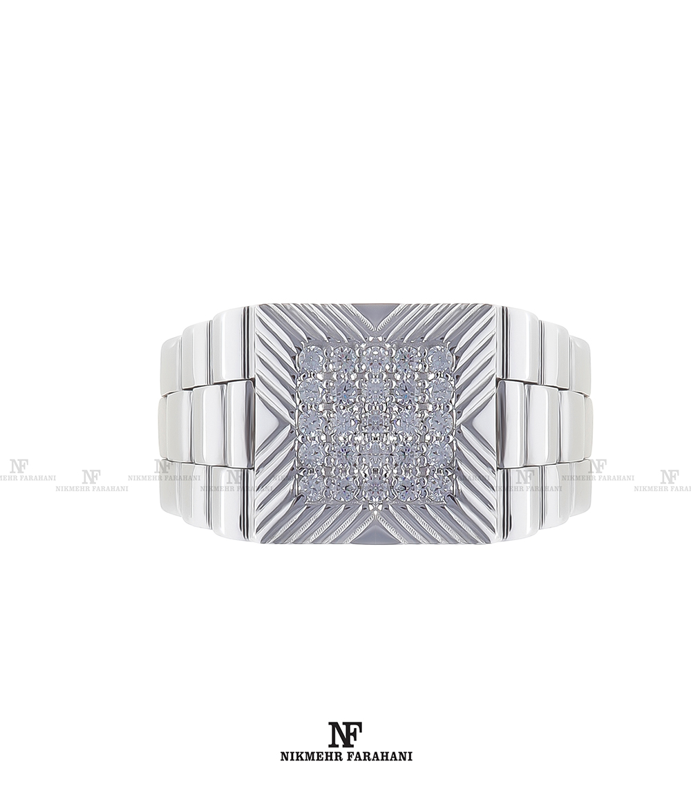 انگشتر مردانه با پایه جواهر مزین به نگین های زیرکنیوم آمریکایی شناسنامه دار