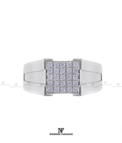 انگشتر مردانه پایه جواهر مزین به نگین های زیرکنیوم آمریکایی شناسنامه دار