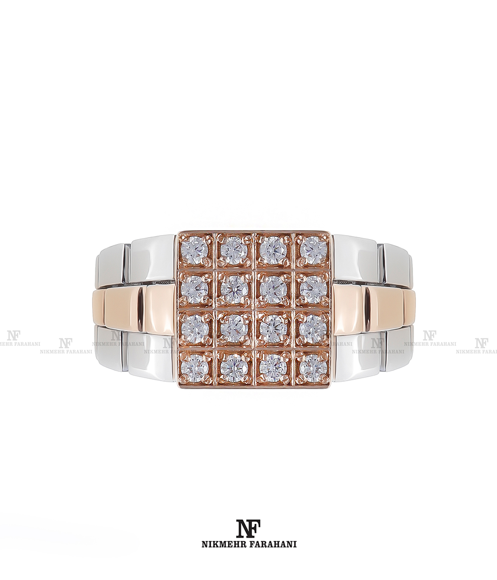 انگشتر مردانه با پایه جواهر مزین به نگین های زیرکنیوم آمریکایی شناسنامه دار