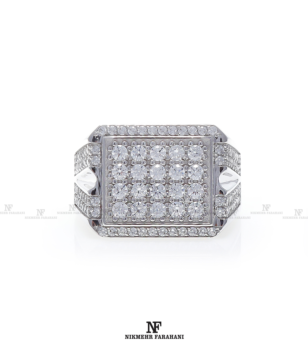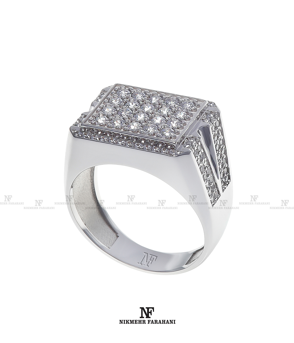 انگشتر مردانه پایه جواهر مزین به نگین های زیرکنیوم آمریکایی شناسنامه دار