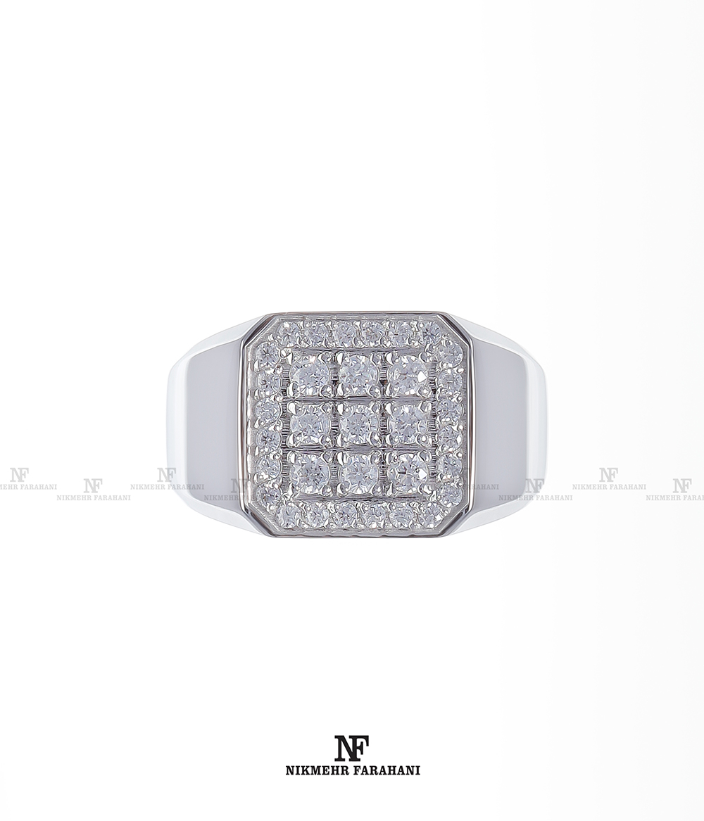 انگشتر مردانه با پایه جواهر مزین به نگین های زیرکنیوم آمریکایی شناسنامه دار