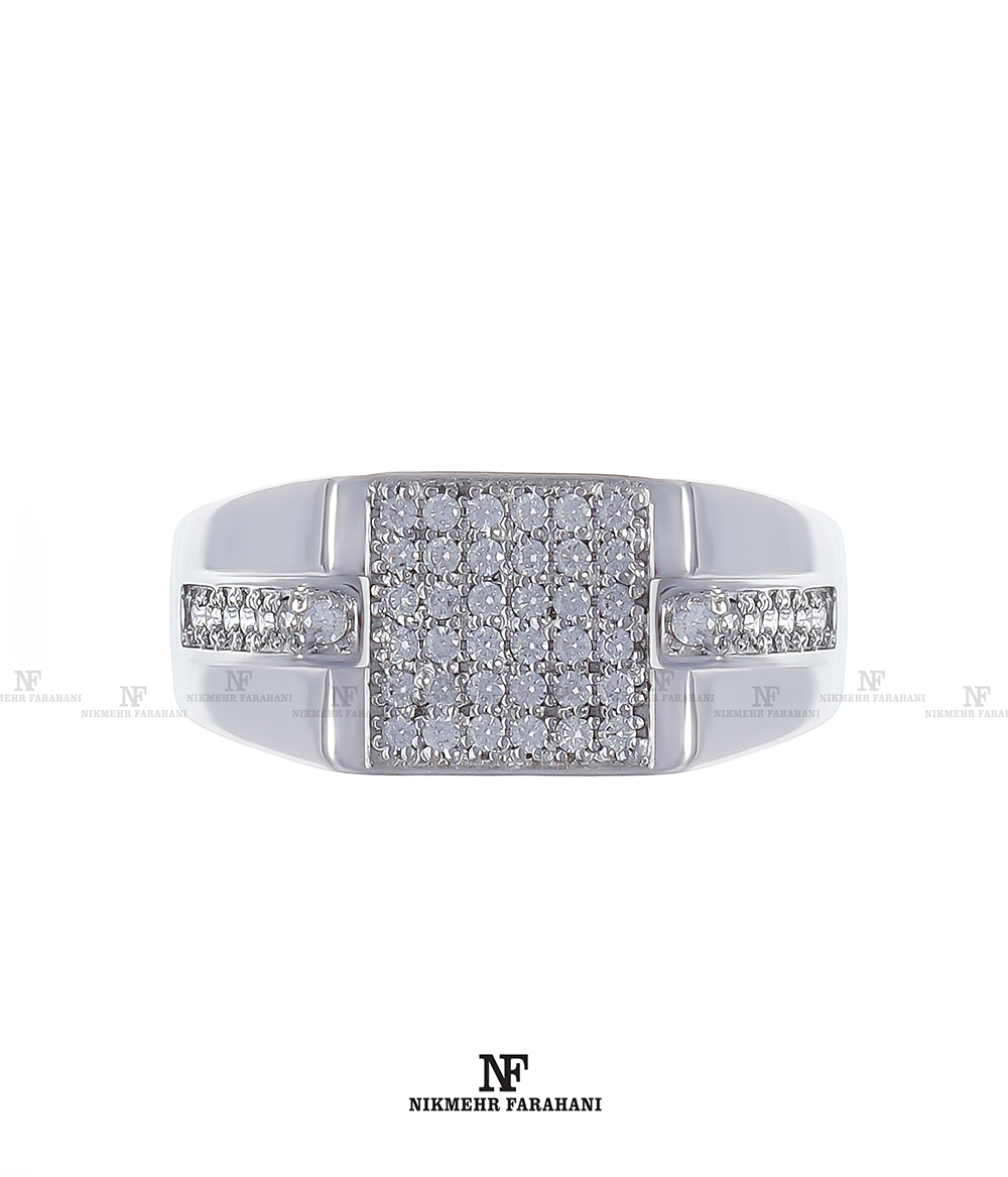 انگشتر زنانه با پایه جواهر مزین به نگین های ززیرکنیوم آمریکایی شناسنامه دار