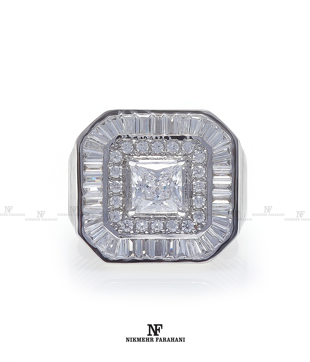 انگشتر مردانه پایه جواهر مزین به نگین های زیرکنیوم آمریکایی شناسنامه دار