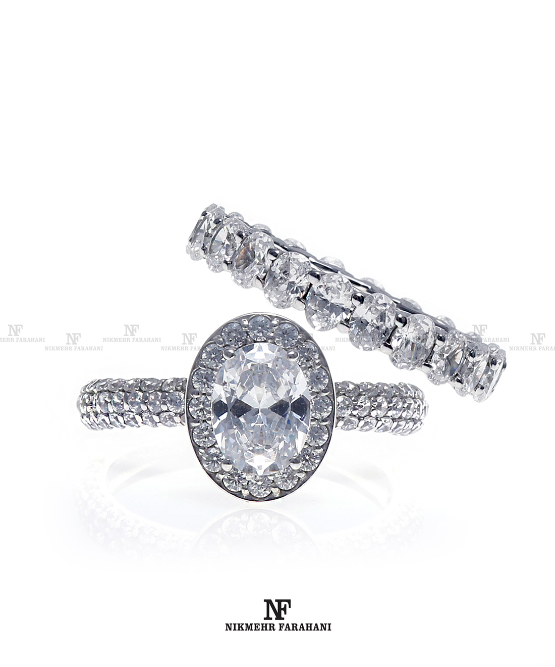 حلقه و پشت حلقه پایه جواهر مزین به نگین های زیرکنیوم آمریکایی شناسنامه دار