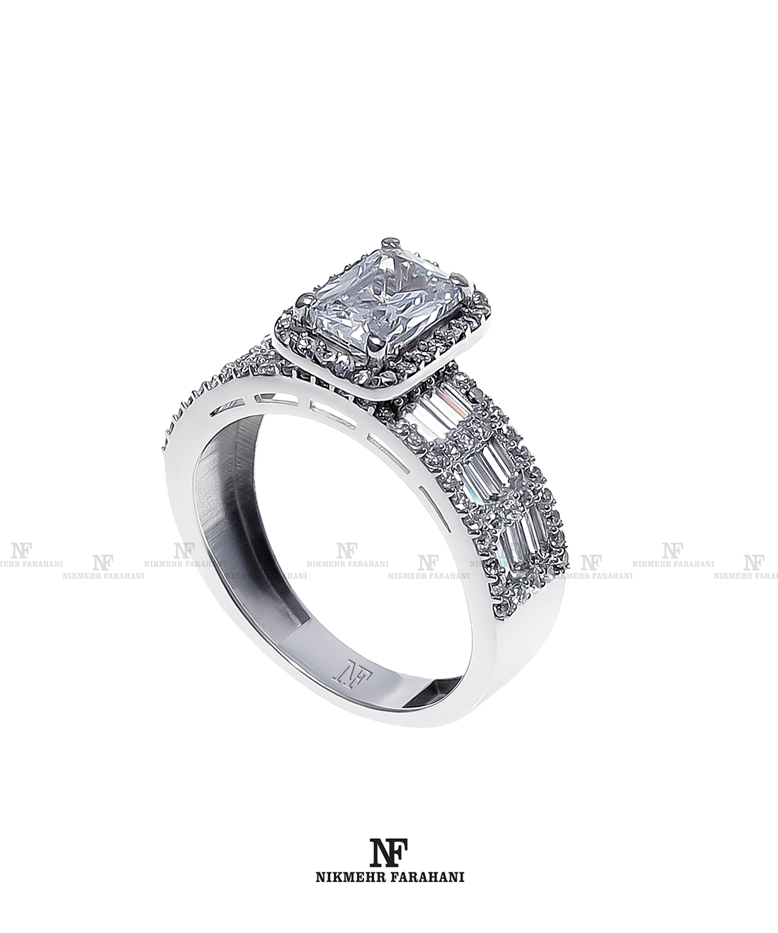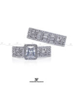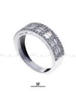 حلقه و پشت حلقه پایه جواهر مزین به نگین های زیرکنیوم با تراش باگت