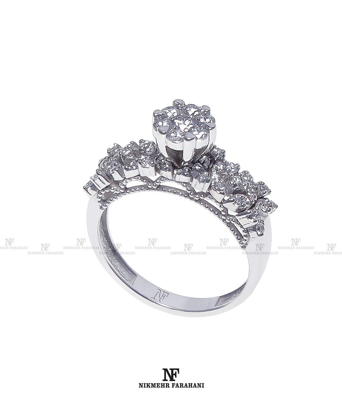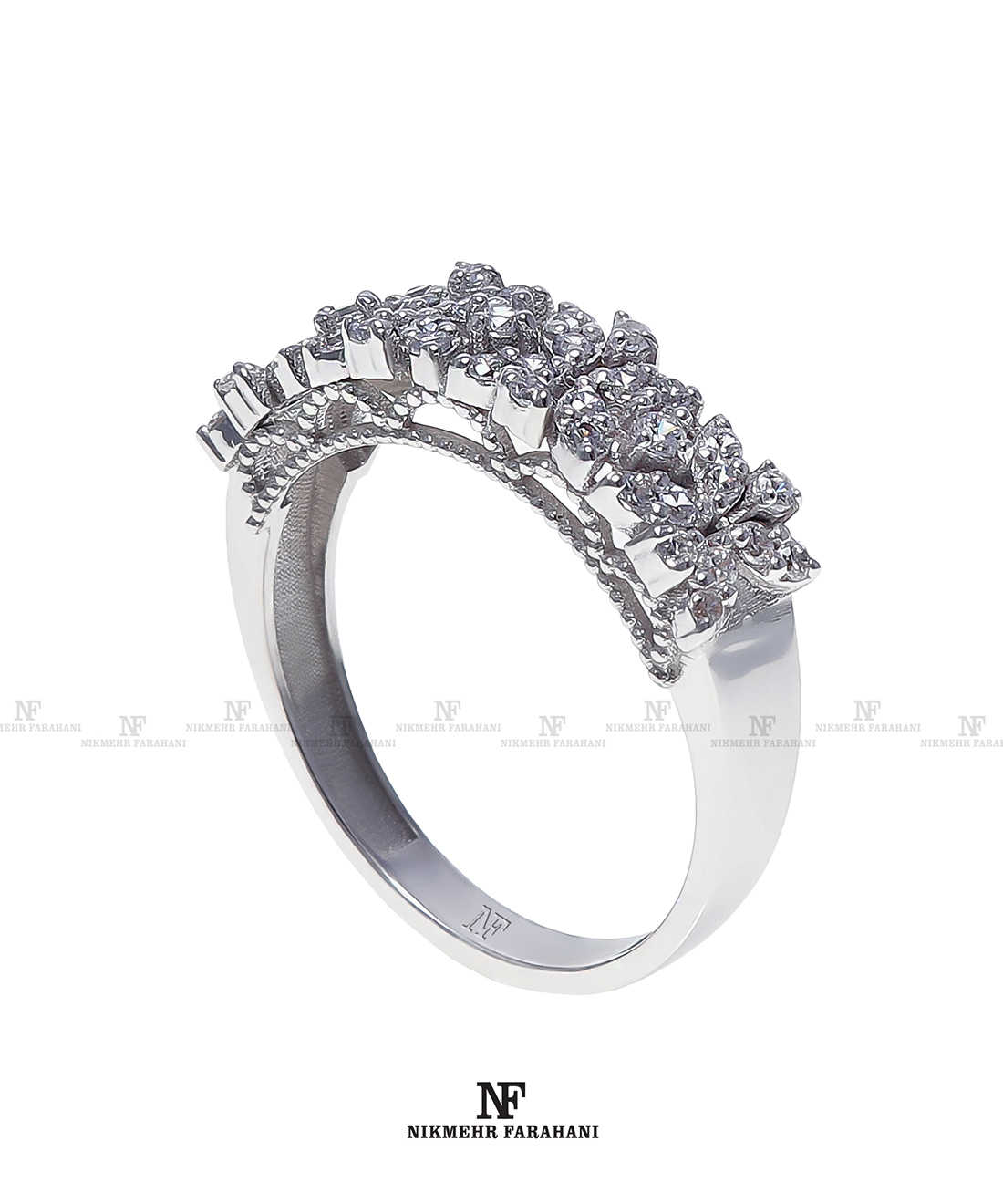 حلقه و پشت حلقه پایه جواهر مزین به نگین های زیرکنیوم آمریکایی شناسنامه دار