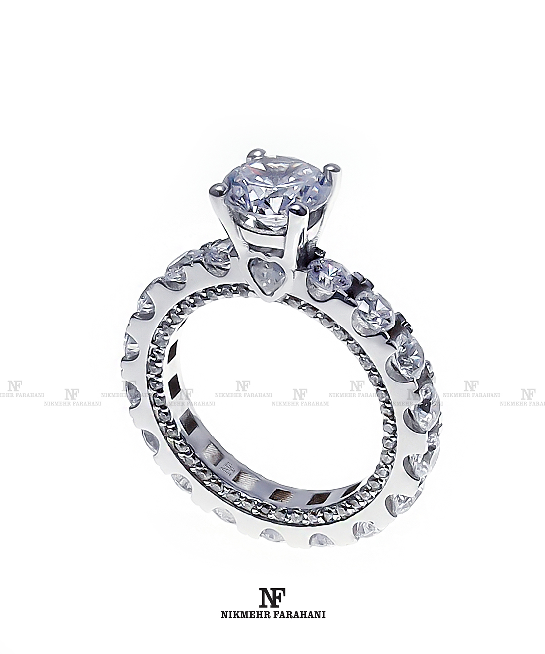 حلقه و پشت حلقه پایه جواهر مزین به نگین های زیرکنیوم آمریکایی شناسنامه دار