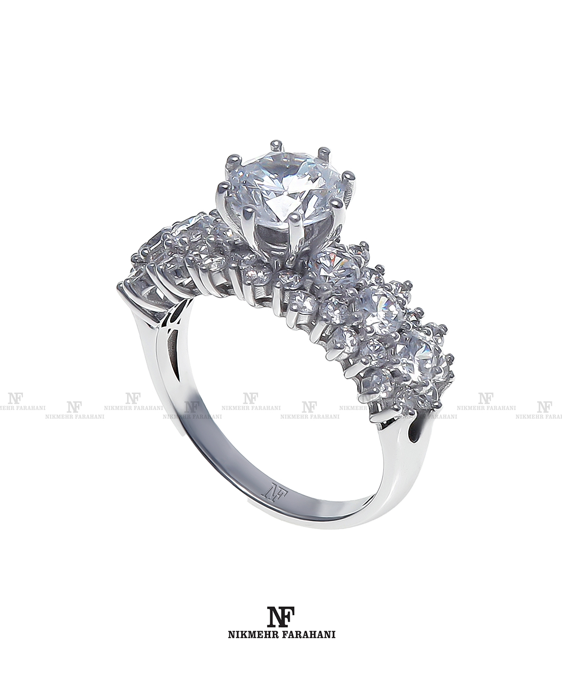 حلقه و پشت حلقه پایه جواهر مزین به نگین های زیرکنیوم آمریکایی شناسنامه دار