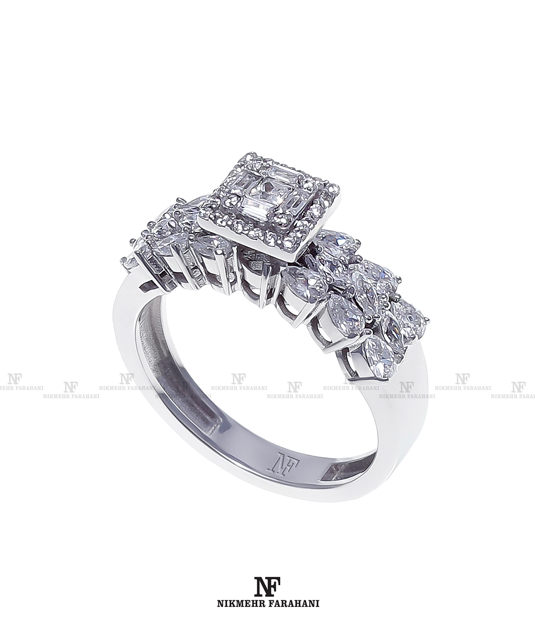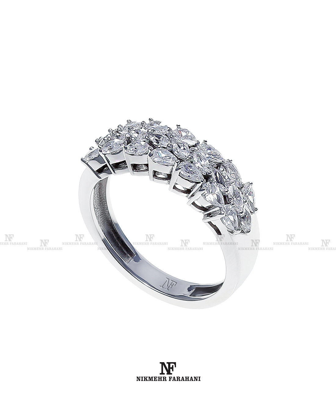 حلقه و پشت حلقه پایه جواهر مزین به نگین های زیرکنیوم امریکایی شناسنامه دار