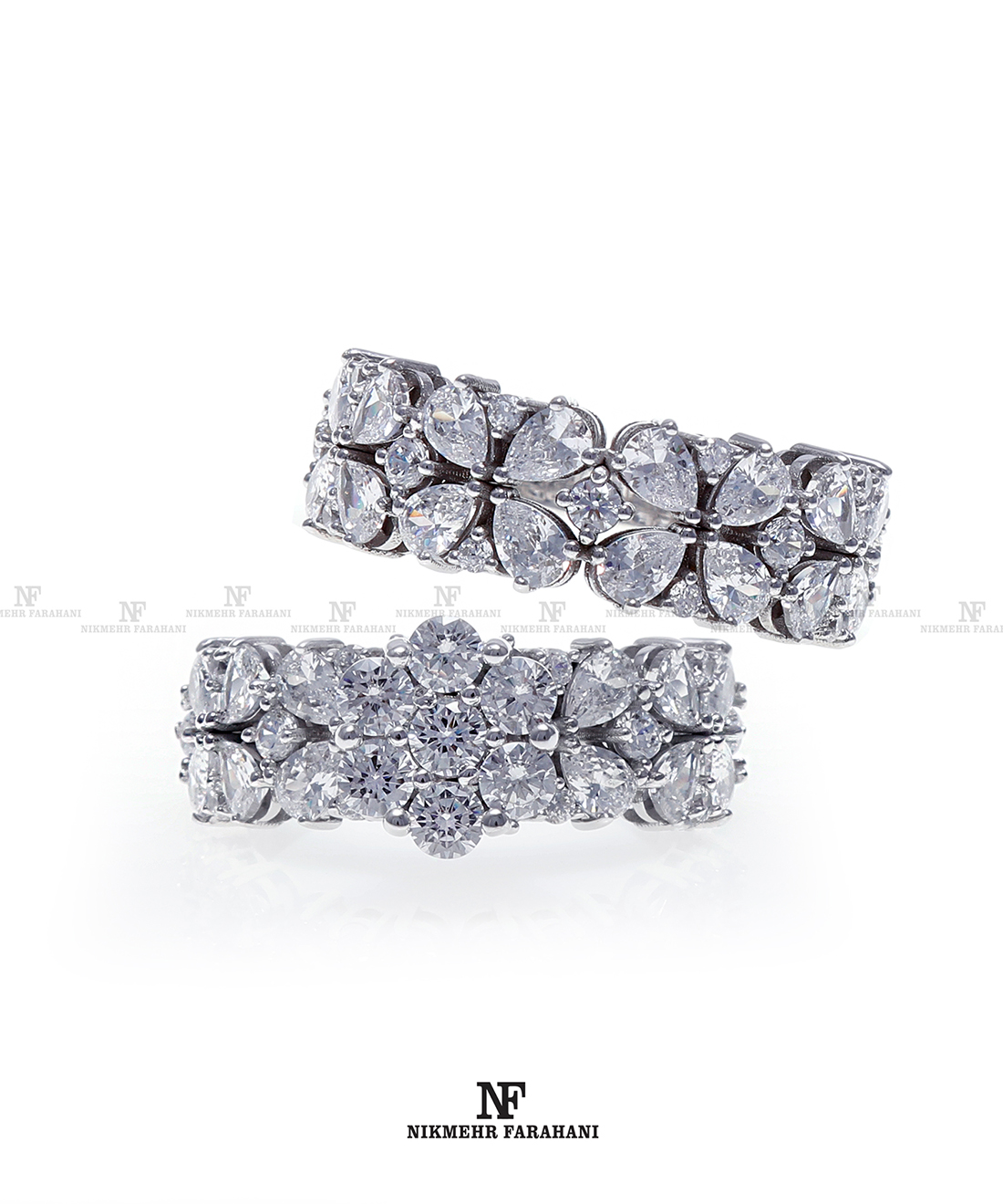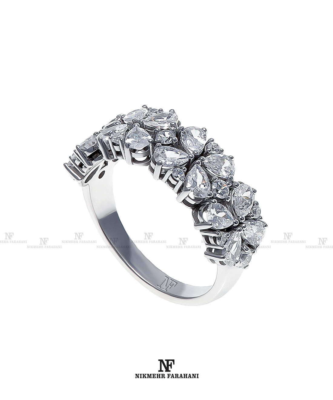 حلقه و پشت حلقه پایه جواهر مزین به نگین های زیرکنیوم آمریکایی شناسنامه دار