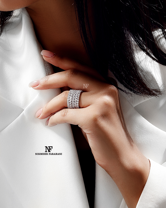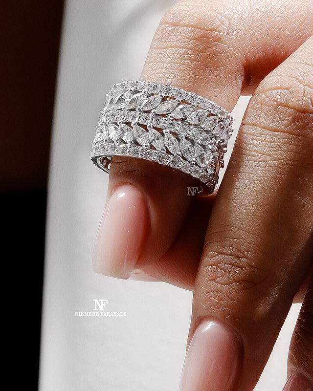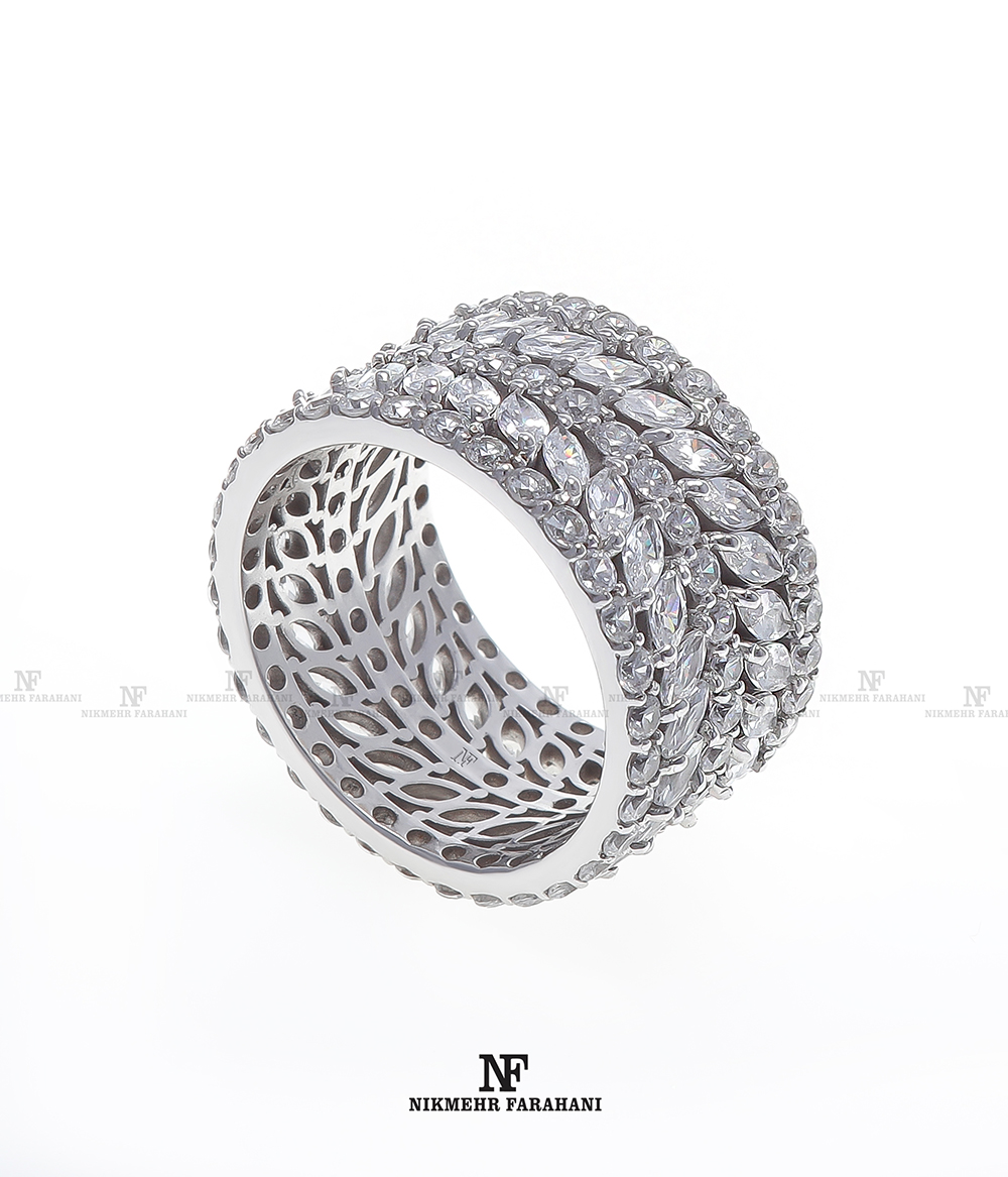 انگشتر تمام دور پایه جواهر مزین به نگین های زیرکنیوم آمریکایی شناسنامه دار